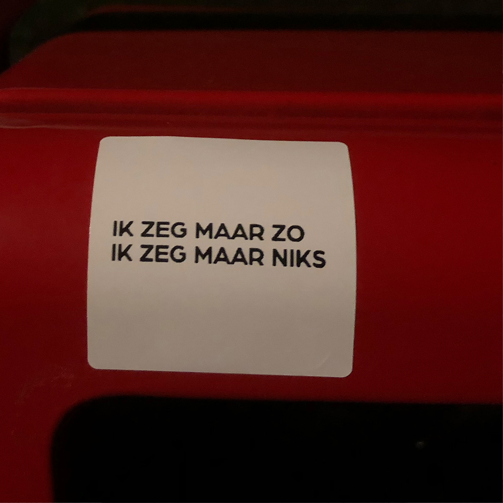 Gewapend met een labelprinter, Photoshop en een scherp oog voor detail maak ik mijn eigen stickers. Daarmee reageer ik direct, soms speels en soms kritisch, op de wereld om me heen. Kleine statements met een duidelijke boodschap.