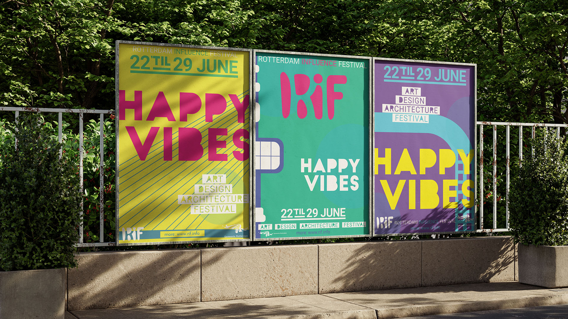 Voor dit fictieve festival ontwikkelde ik een reeks posters die het hart van Rotterdam laten spreken. Het Rotterdam Influence Festival draait om de impact van cultuur, media en identiteit in een stad die voortdurend in beweging is.